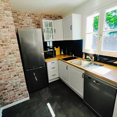 House 64 M2 - 2 Bedrooms Near Disneyland Paris villa offers a fully furnished kitchen, as well as a dining area to cook and dine. There is also an electric kettle, a fridge, and a toaster available in the kitchen. The Bailly-Romainvilliers accommodation is in close proximity to Boulangerie Laird, where guests can enjoy various meals. Place de l'Europe bus station can also be found in the immediate vicinity of the accommodation.